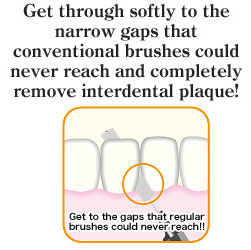 This brush is very slim so suited for users who could never reach the target gaps with conventional interdental brushes.